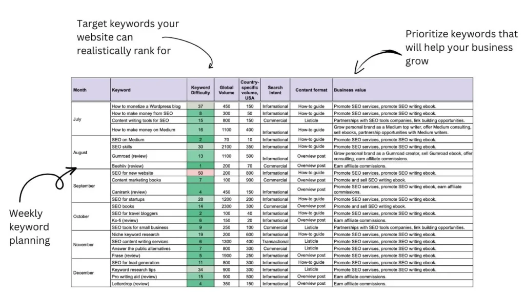 Besides helping my clients with keyword research, I use the same process for my own website. Every quarter, I create a keyword plan focused on finding and prioritizing keywords that can bring in revenue. Each keyword then becomes a detailed SEO brief I use to write content designed to rank.